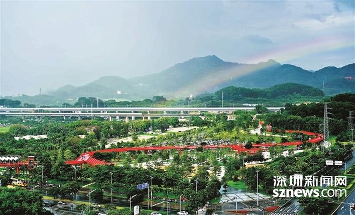 读特客户端·深圳新闻网2021年8月16日讯(宝安日报记者 雷云霞/文 通讯员 蔡欢 李世界/图)8月15日,光明虹桥上空出现了一道彩虹,地面上的虹桥加上天空中的彩虹形成了一道“双虹桥”,与此同时,在凤凰街道塘家社区上空还出现了双彩虹,很快光明市民的朋友圈就被彩虹刷屏了。