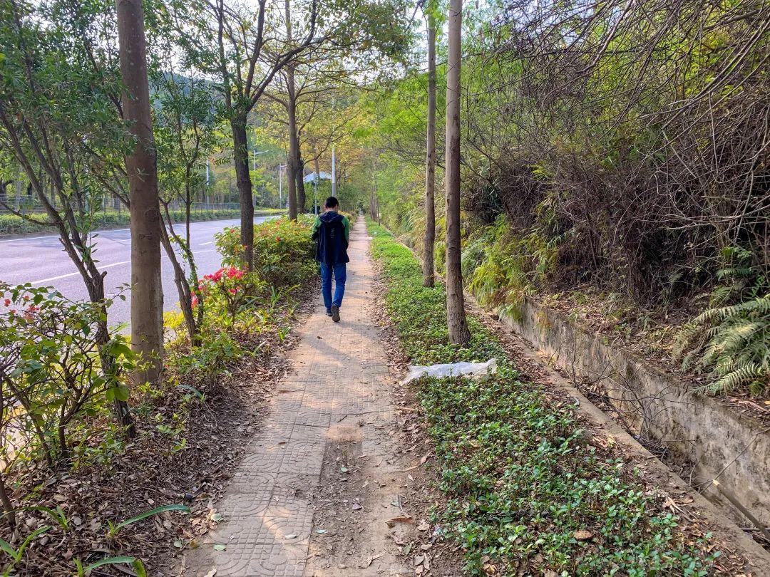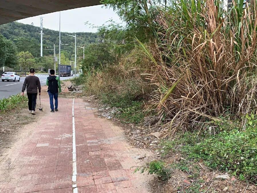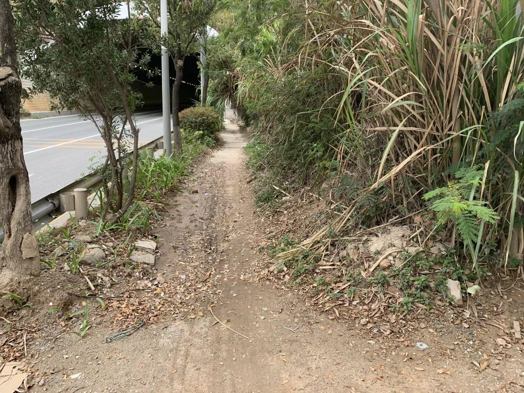 改造前:该路段为高铁控制线区域,绿化茂盛导致人行道阻断缺失。