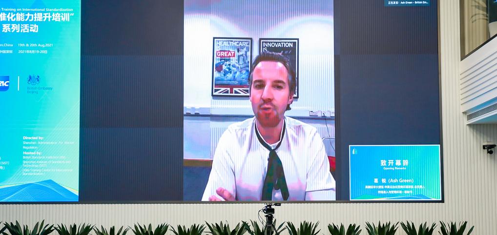 种栗在致辞中提到,“国际标准化能力提升培训”系列活动,是中英营商环境标准化合作中组织治理项目的具体活动之一。该项目在标准推广试点、新国际标准提案、国际标准化人才培养等方面均取得了显著成效。充分体现了深圳对国际标准化合作交流工作的高度重视,也是中英双边标准化合作的良好实践与示范。
