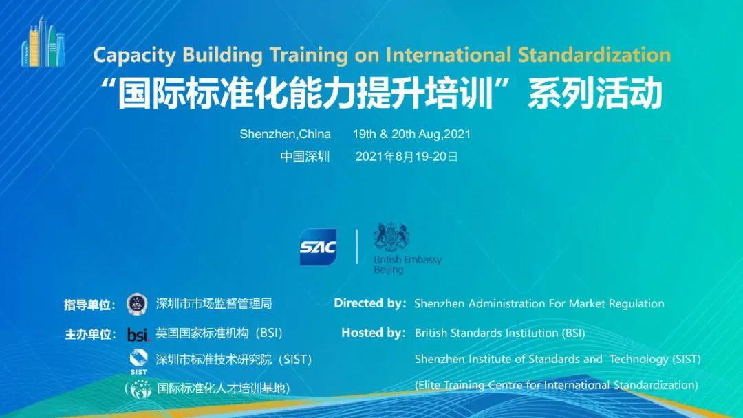 中英法治化营商环境项目总负责人、市场准入与营商环境一等秘书葛锐,深圳市市场监督管理局党组成员、副局长李军,国家市场监督管理总局标准创新管理司国际标准合作处处长种栗,深圳市市场监督管理局标准处处长史诗祯、深圳市标准技术研究院院长周鹏等主要领导出席了活动。培训活动吸引了众多企业及社会团体专家线上参加。