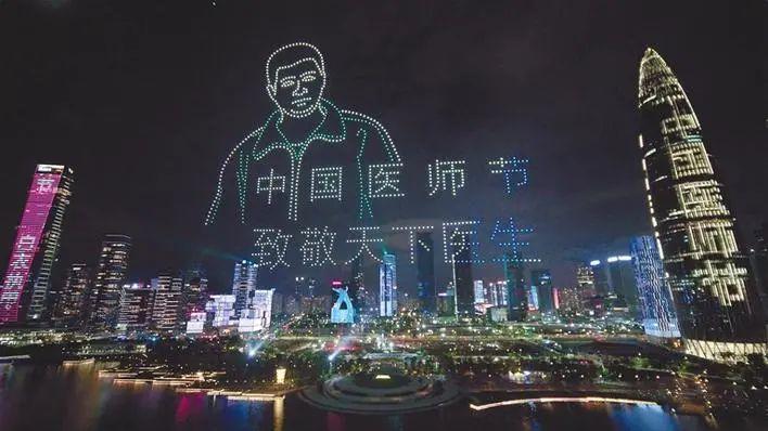 日前,1000架无人机点亮深圳夜空,致敬深圳医生群体。截至7月底,深圳市共有近6万名医生。