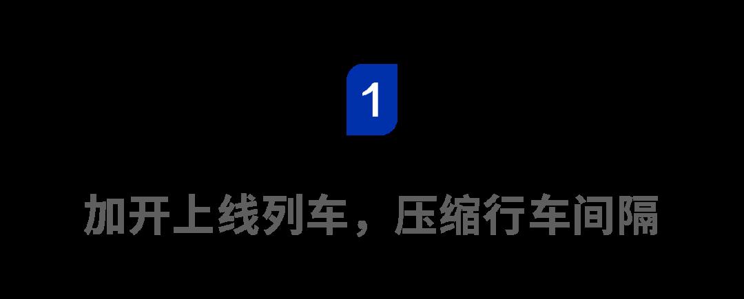 周末高峰期间加开 3 列上线列车,行车间隔由4分25秒压缩至 4分钟,全天运能提升 6.51 %。