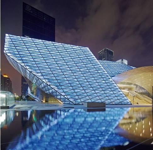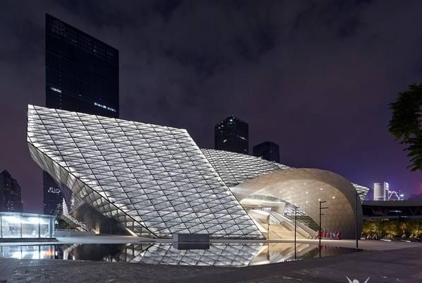 “两馆”以一个巨型的钢结构幕墙外表皮包囊了两个相对独立的文化馆。