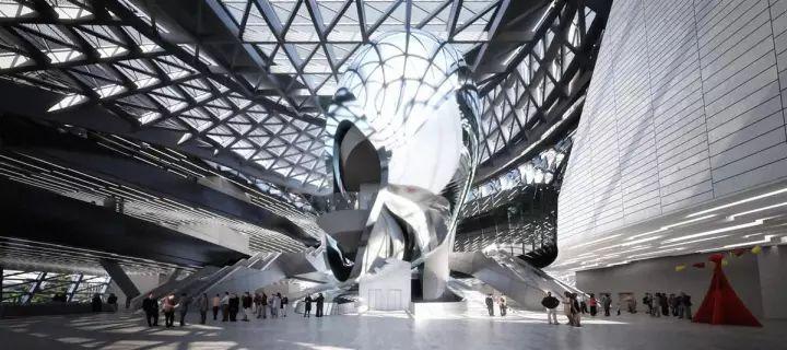 云中心雕塑作为两馆的功能共用空间,提供咖啡厅,茶室服务等。既是两馆建筑空间的一部分,又是一个巨大而充满震撼力的艺术作品。