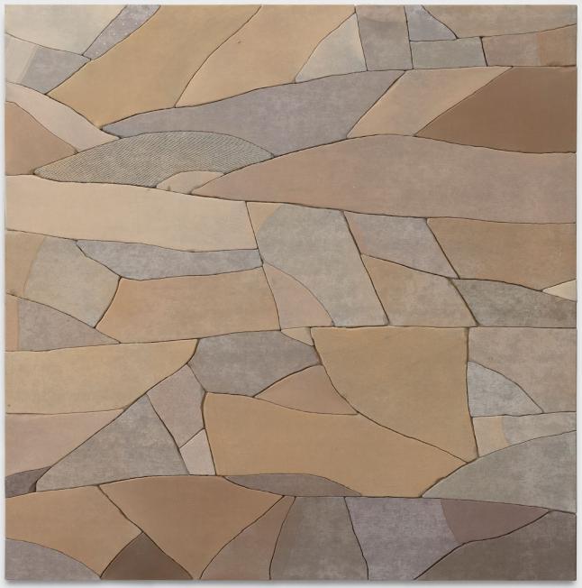 马秋莎,沃德兰-浪 No. 1,水泥板、尼龙袜、木板、树脂、铁,110 x 110 cm, 2021