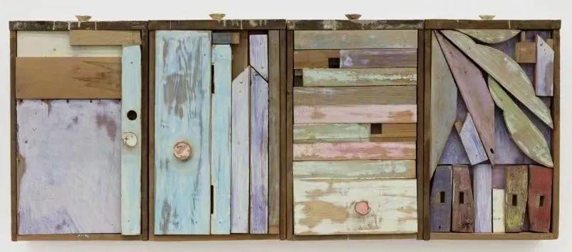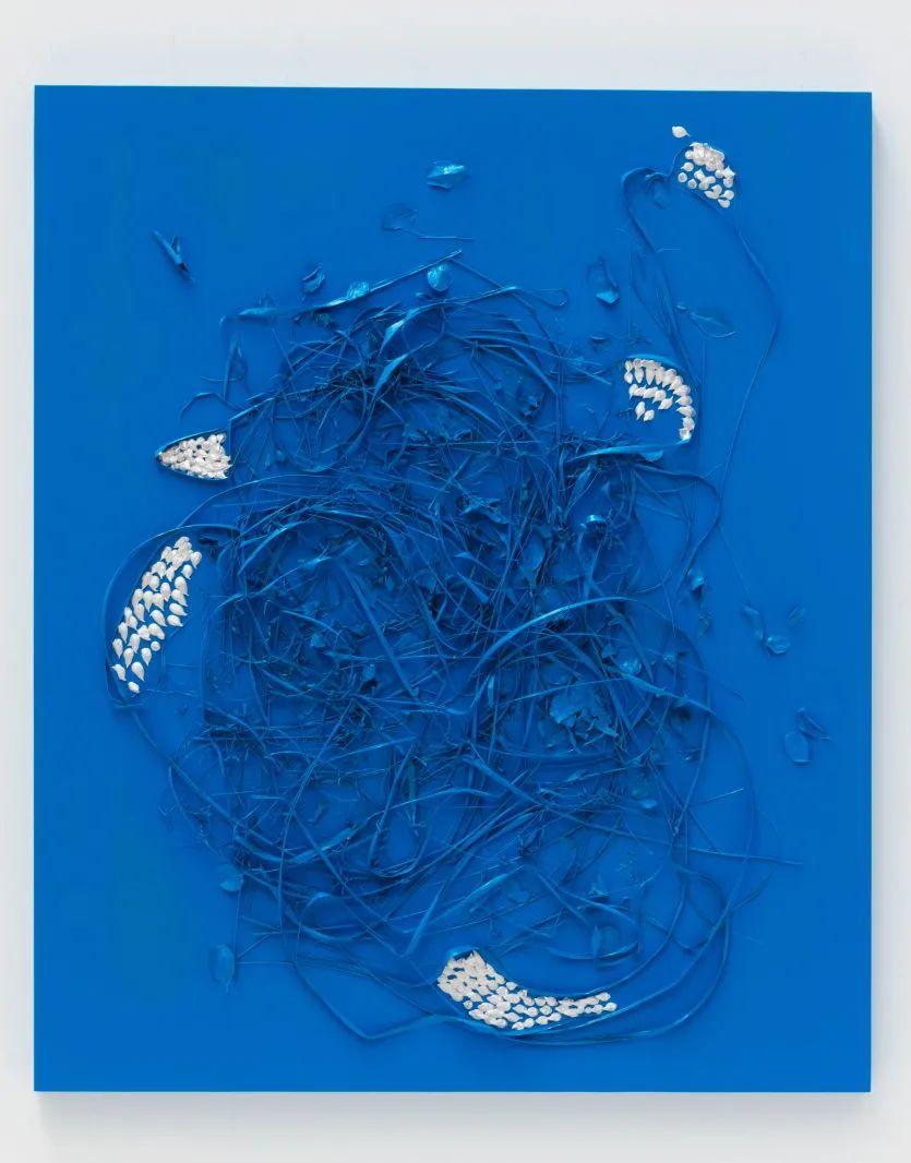 杨心广,土壤之上(天蓝),木板,植物,丙烯颜料,水性封闭漆,120 x 100 x 12 cm,2019