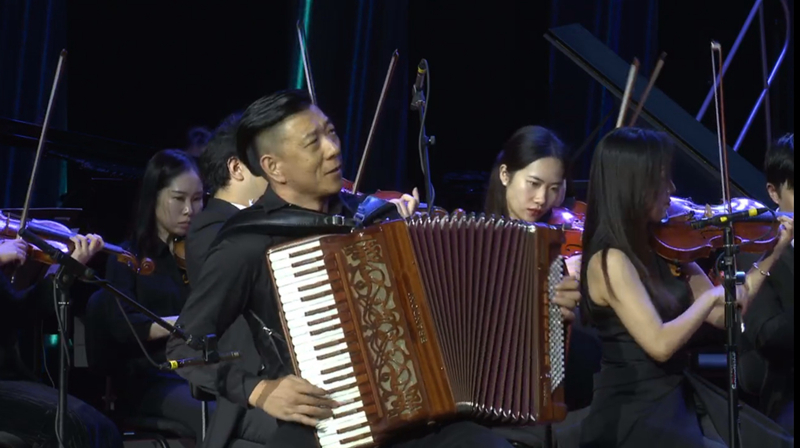 优秀指挥家、手风琴演奏家配合默契,《红旗颂》《致克劳德的探戈》《牧民歌唱毛主席》《波德盖茨“VIVA VOCE”第二巴扬协奏曲》《接过雷锋的枪》《G弦上的咏叹调》《秋》等曲目演奏接连登场、精彩纷呈,为观众朋友带来一场高水平的艺术盛宴。恰逢中国共产党成立一百周年,为了表达对党、对祖国诚挚的热爱,音乐家们用音乐献礼,音乐会在《没有共产党就没有新中国》悠扬的演奏声中落下帷幕。