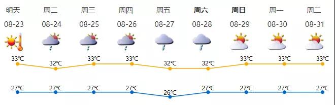 23-26日多云为主,炎热天气持续,早晨和午后局地有短时(雷)阵雨,其中23-24日局部大雨;展望27日前后降雨趋频密,局部有暴雨。大家洗晒可要抓紧了。
