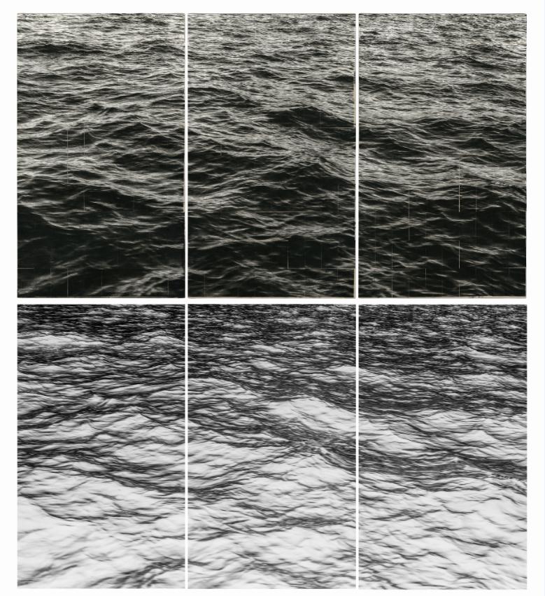 李舜,海面-霍乱时期的爱情,小说页面上素描,收藏级艺术微喷,200cm x 354cm x 2,2017-2018