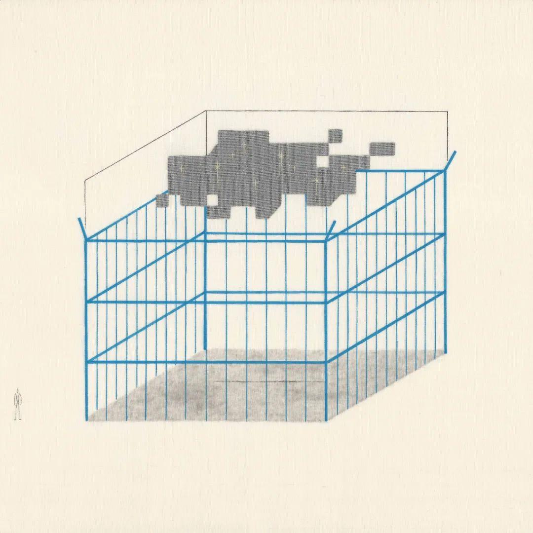 文晢,VOXEL-009 漏洞,绢、墨、矿植物颜料,26.5 × 26.5cm,2021
