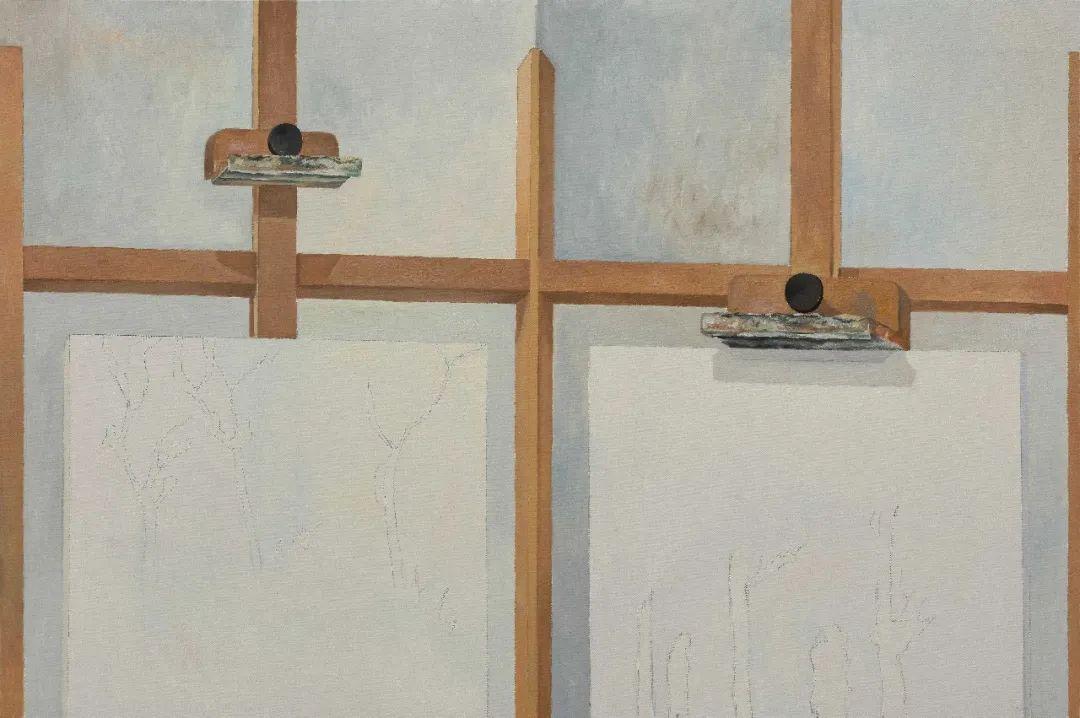 贺勋,韵脚-落下与枝丫,布面油画,100x150cm,2019
