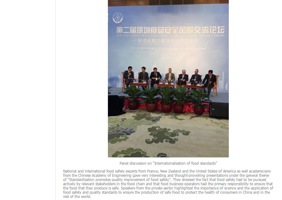 深圳在创建国家食品安全示范城市工作中,为加强应急管理,完善风险交流机制,在风险交流方面,开展了食品安全“五进”、食事药闻大讲堂等多元化活动,举办深圳食品安全论坛,多个国家和地区的有关领导、专家和企业代表出席。