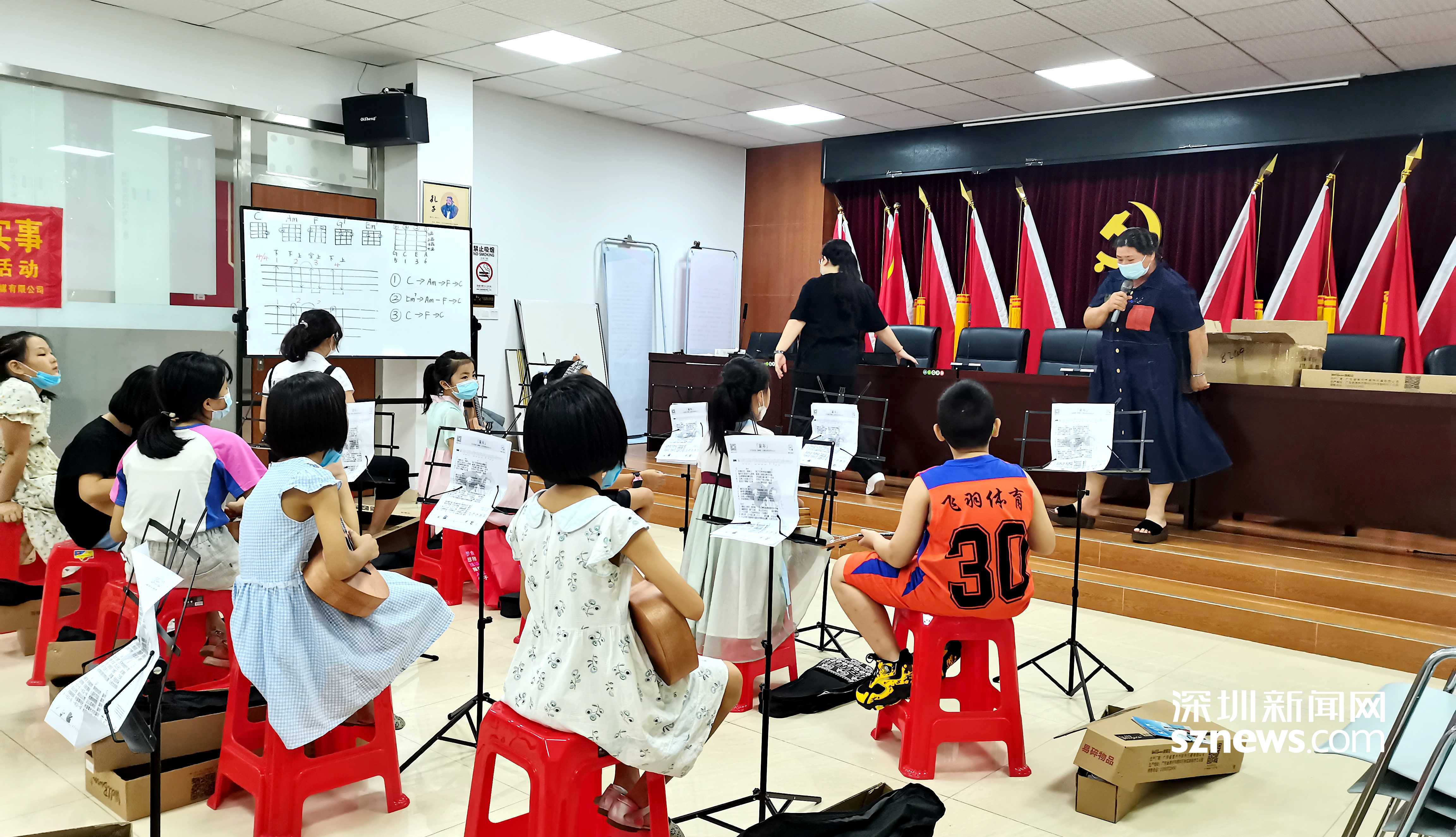 读特客户端·深圳新闻网2021年8月24日讯(记者 林秋颖 通讯员 余巍巍 黄夏笛)近日,从马田街道新庄社区传来了阵阵美妙演奏声,来自辖区的25位“大小朋友”成为尤克里里培训班学员,他们认真对着谱子扫着琴弦,边弹边唱,不断练习,气氛活跃温馨。