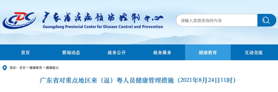 8月24日,广东疾控更新对重点地区来(返)粤人员健康管理措施。