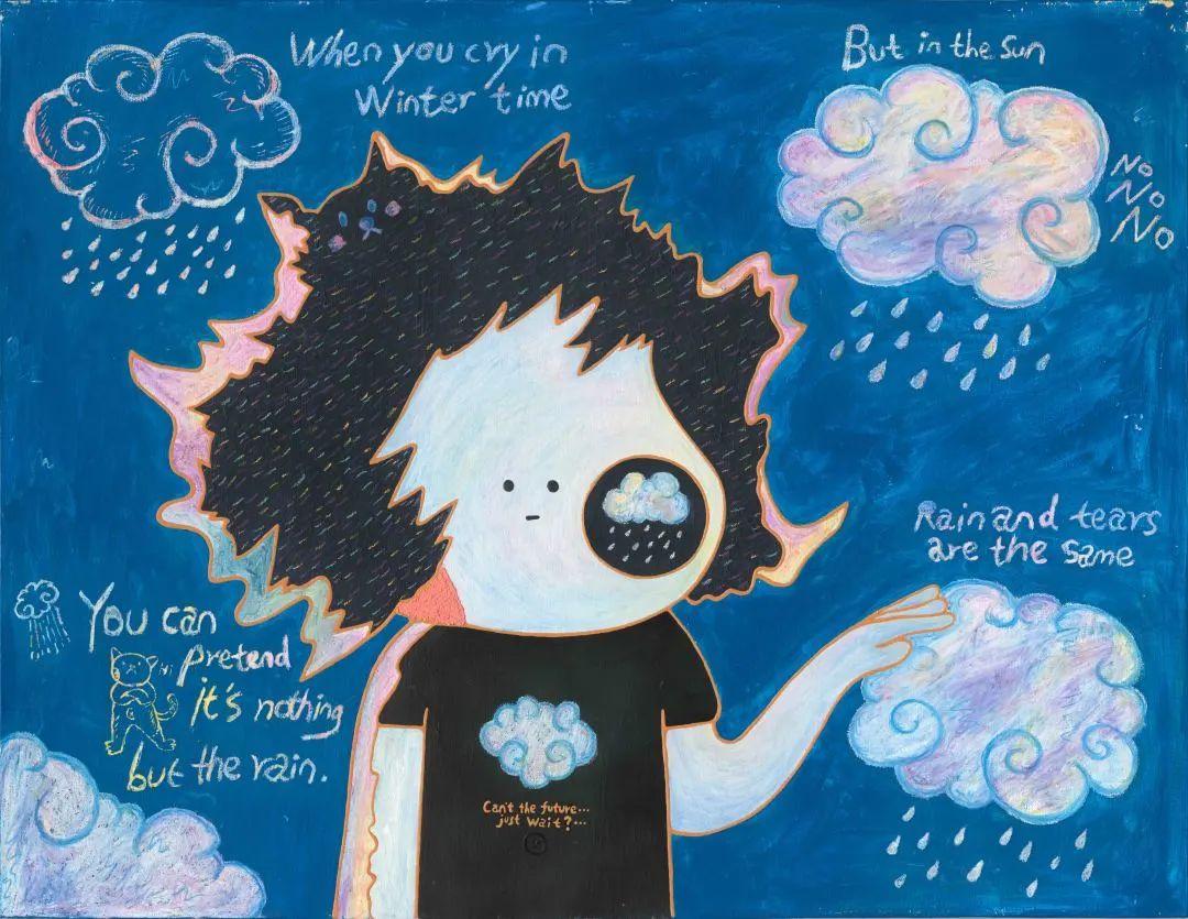 李沐霖,雨和眼泪,布面丙烯综合材料,130x100 cm