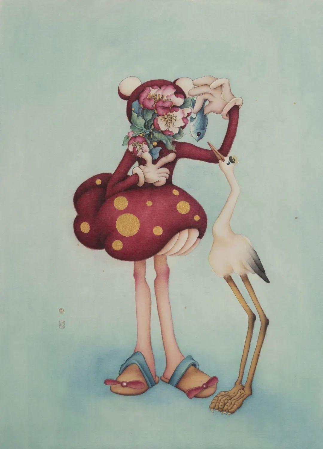 徐琳琳,仙鹤与鱼,绢本设色,86x60 cm