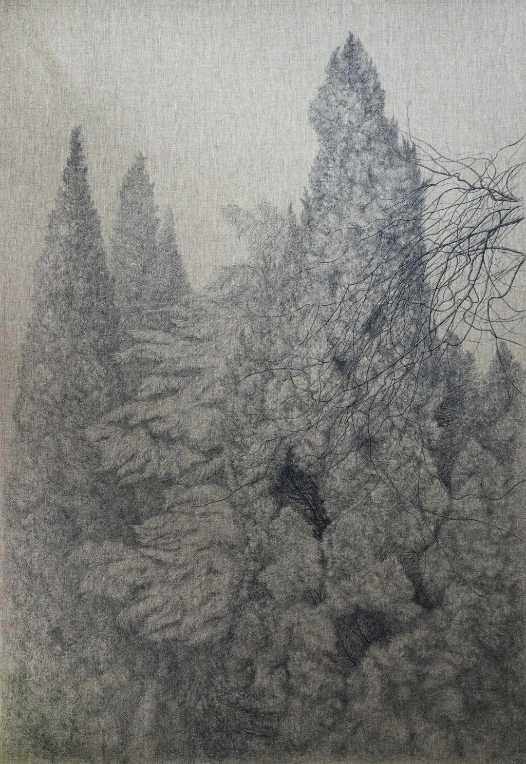 张近慧,柏树,布面油画,223×153cm,2020