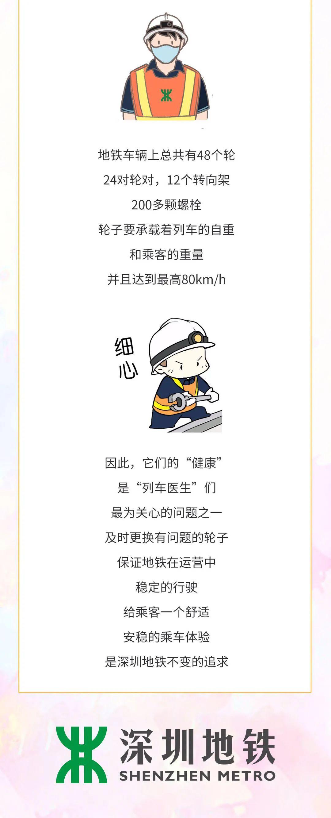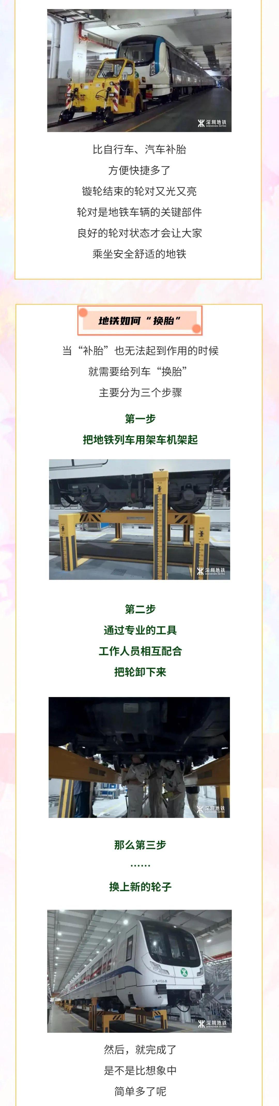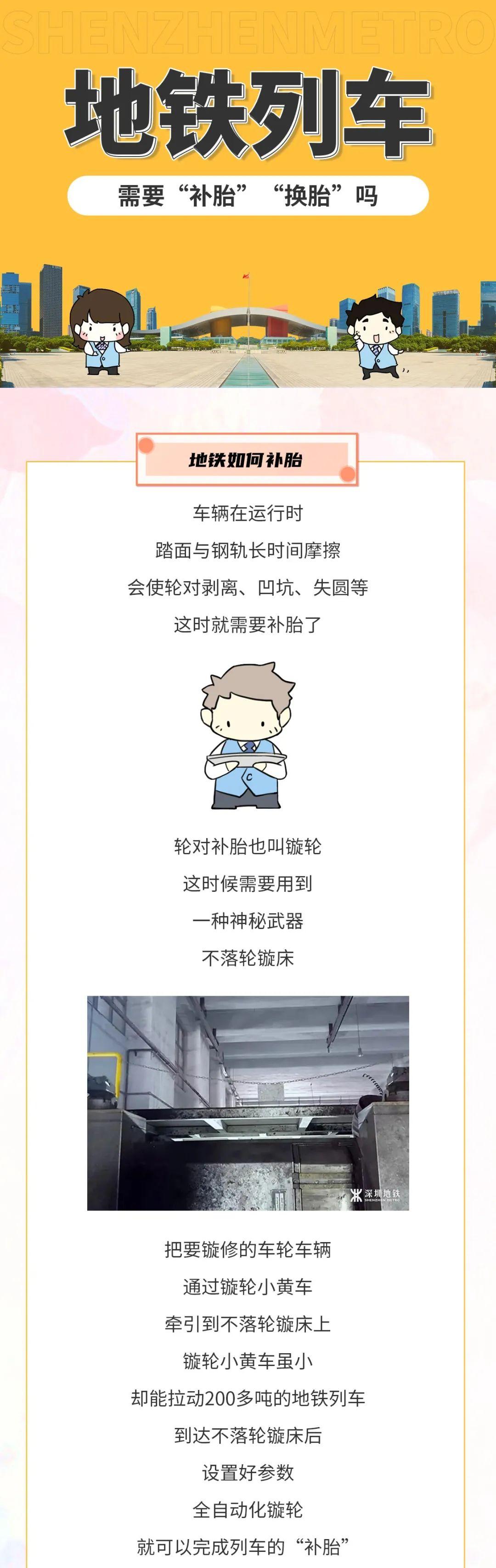车轮滚滚奔向前方#厉害的知识增加啦#地铁列车的车轮想必大家都有一定印象那么每天在轨道上高速运转的列车到底有多少个轮子呢?需要“补胎”“换胎“吗今天深铁君就带领大家来了解了解//ShenzhenMetro//◆◆地铁需要“补胎”“换胎”吗◆◆说起地铁车轮那可真是最硬核的知识了今天的科普有没有解开大家的疑惑呢了解更多地铁相关问题还是得紧盯深铁君欢迎大家一起多多讨论哦~/·内容来源 深圳地铁·部分图片来源网络,如有侵权联系删除编辑 集团党群办公室本文由深圳地铁整理编辑发布,转载请注明来源·在看的,麻烦点一下再走▽