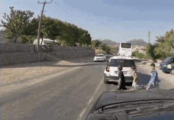 突遇一小孩从道路右侧