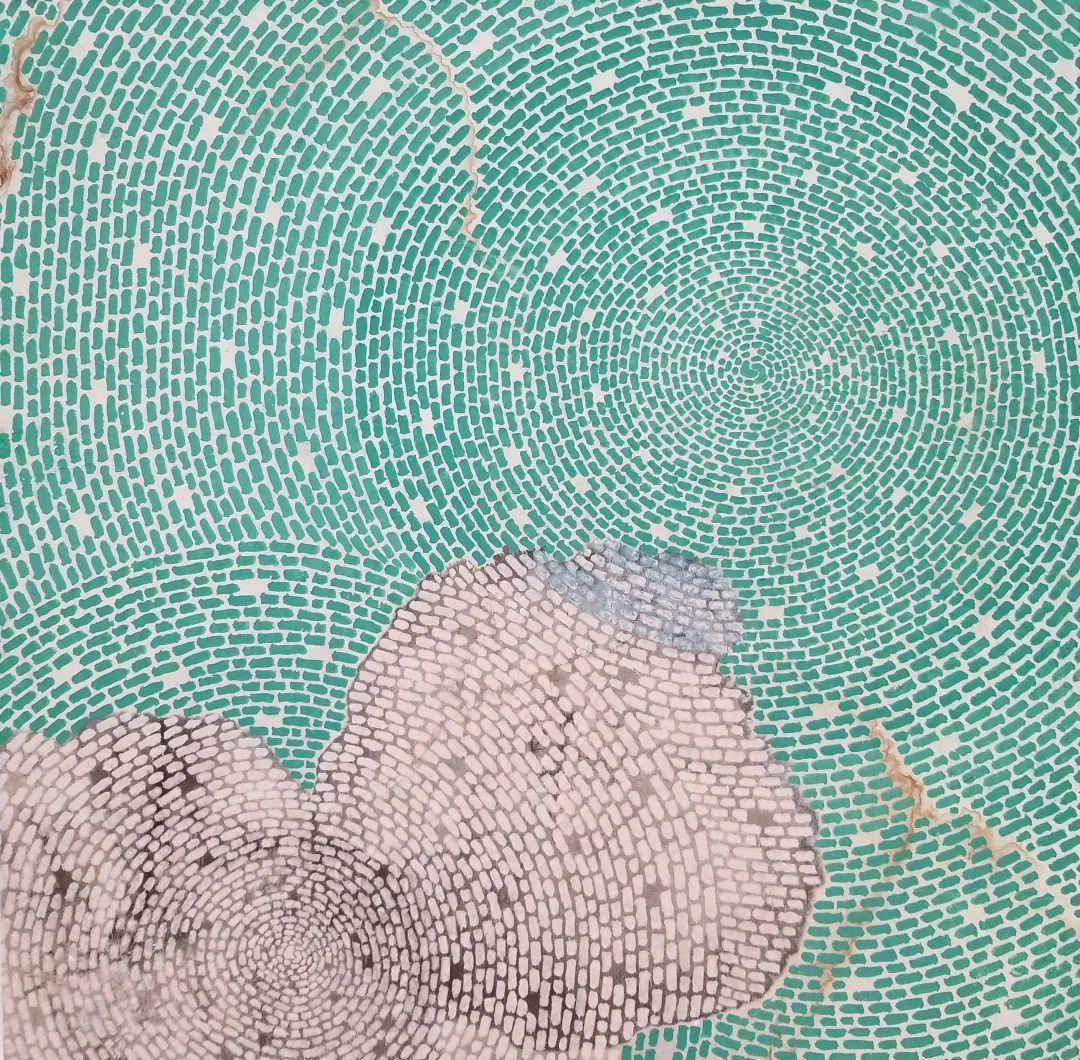 Katharina Lehmann, Source, Mixed media on canvas, Ø100 cm, 2020