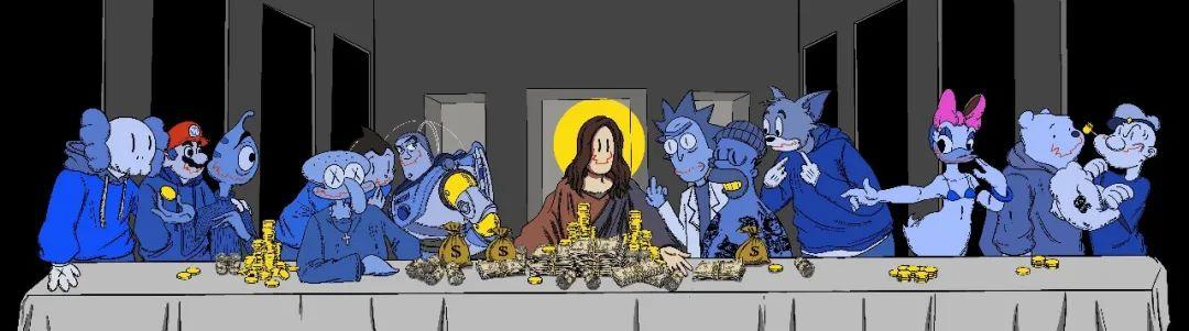 DAIV, The Last Supper, Acrylic and gold foil on canvas, edition of 50, 150x40 cm, 2021