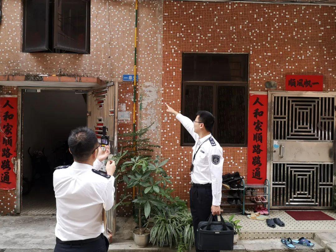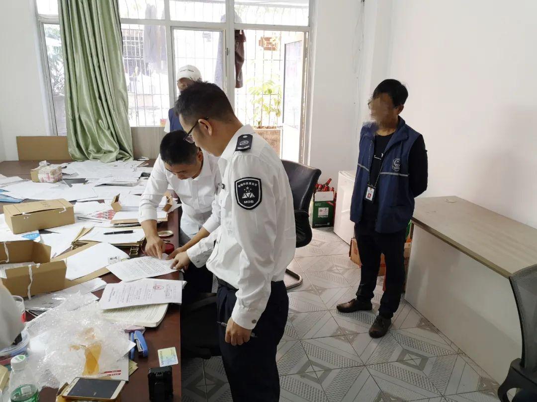 在社区工作人员的见证下,执法人员检查当事人经营场所