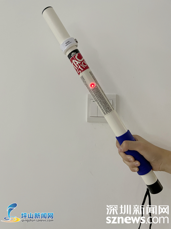 手杖式漏电检测仪像个小手杖,小巧便捷,使用时旋转套环,旋转至高灵敏度设置区,遇到漏电区域,检测仪就会发出嘟嘟声,同时LED灯开始闪烁,在积水区域,检测仪先行,对于防汛一线人员和市民起到了保险的作用。
