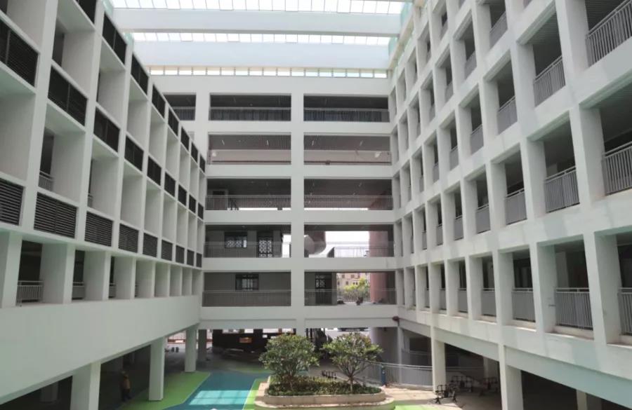 深圳中学坪山创新学校是坪山区政府委托深圳中学管理的区属九年一贯制公办学校,位于坪山区石井街道石井社区竹青路与绿荫路交汇处西南角。规划办学规模为54班,可提供学位2520个。项目总用地面积为31625平方米,总建筑面积为118177平方米。从2019年8月6日签署协议,到2020年8月11成立筹备组,再到今天正式揭牌,学校历经2年多时间切磋琢磨、美玉终成,将于今年9月1日迎来第一批小一、初一学子。