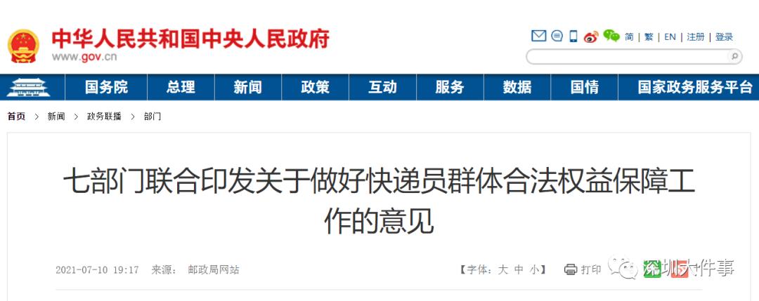 7月,为切实保障快递员群体合法权益,交通运输部、国家邮政局等7部门联合印发了《关于做好快递员群体合法权益保障工作的意见》,明确到“十四五”末期要实现快递员群体合法权益保障的相关制度机制基本健全,快递员群体薪资待遇更趋合理,社保权益得以维护。