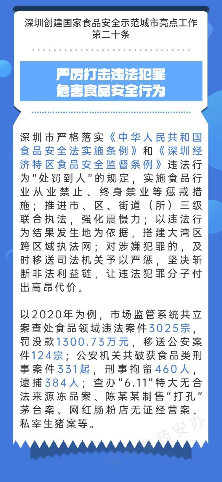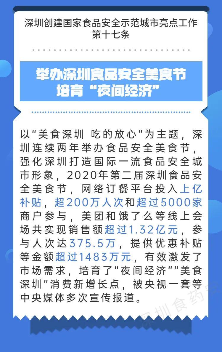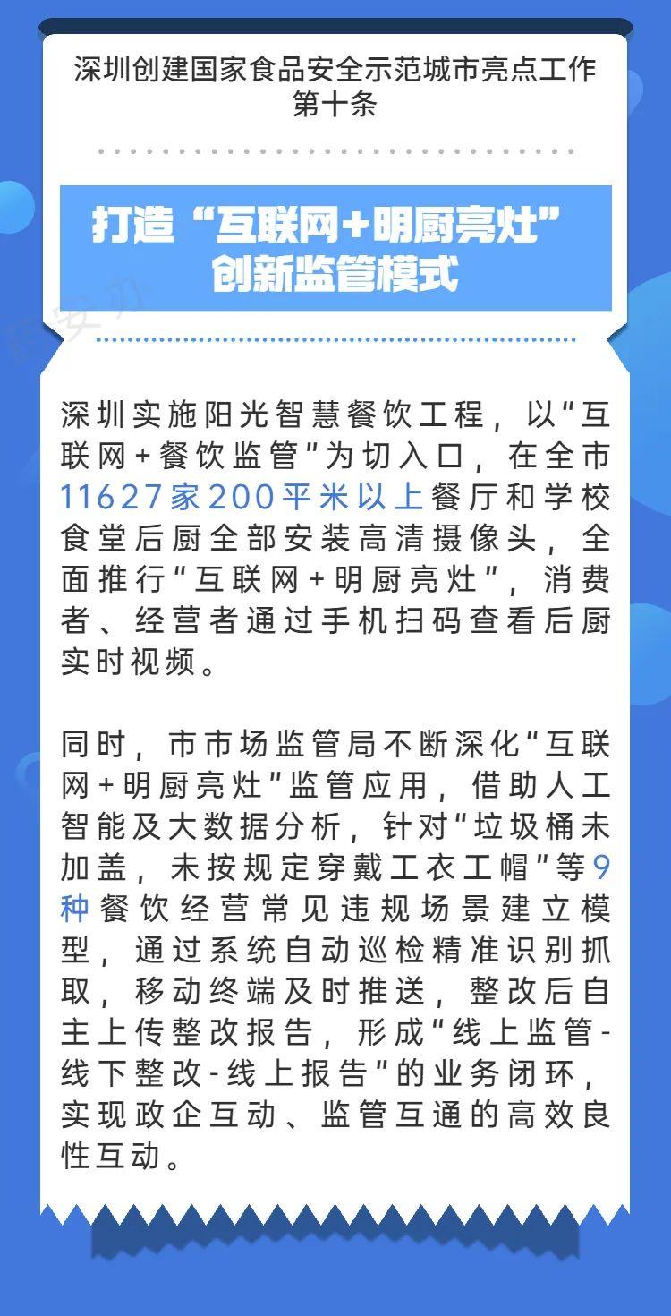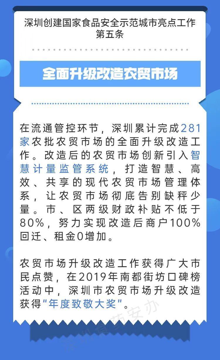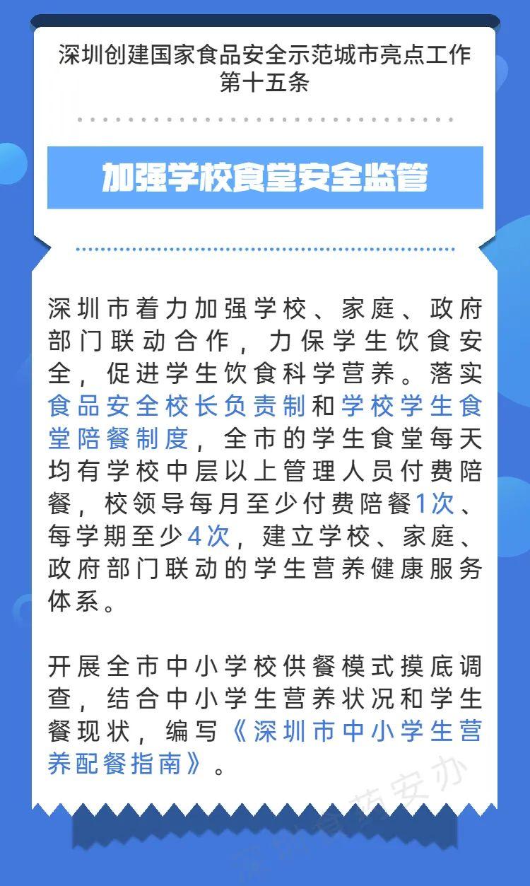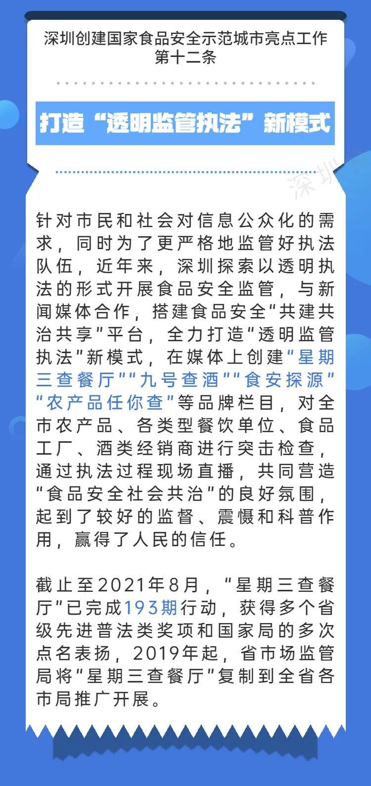 深圳市全力筑牢食品安全防线,监管力求全覆盖,标准引领大湾区,努力形成多元共治、全民食安意识提升的社会格局,实现“打造国内领先、国际一流、市民满意的国家食品安全示范城市”。面对国家的检查,对食品安全是否满意,对创建工作是否了解,是创建工作重要考核项!