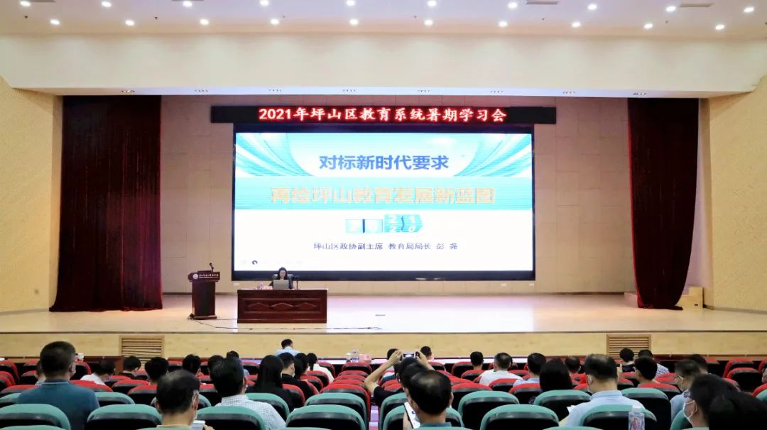 读特客户端·深圳新闻网2021年8月30日讯(记者 杨涛)8月26日,坪山区教育局组织召开2021年暑期学习会,局领导班子成员、局各科室(院、中心)负责人、全区中小幼正副校(园)长、中层干部共700余人通过“主会场(坪山实验学校)+分会场(各校园)”同步参加会议。区政协副主席、教育局局长彭尧出席,并做了题为《对标新时代要求,再绘坪山教育发展新蓝图》的主题讲座。