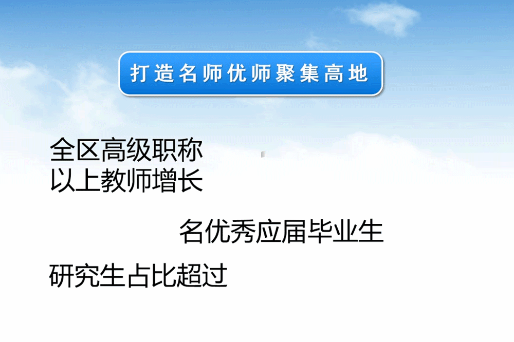 打造优质教育资源聚集高地,先后引进10余所市内外名校名园落户坪山办学,培育了一批坪山区自己的名校(园);打造名师优师聚集高地,创新教育人才保障机制,强力引进名校长名师30余名,招聘700多名名校优秀应届毕业生,研究生占比超过70%,全区高级职称以上教师增长110%;义务教育质量提升三年行动计划落地见效,公民办学校结对帮扶深入实施,学生综合素养大幅提升。