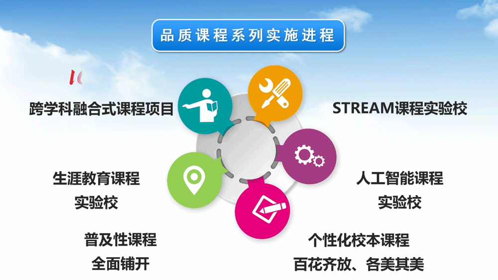 12项工程:党建思政领航工程、学位布局精准工程、名校名园集群发展工程、教育高质量提升工程、区域课程改革创新工程、创新型人才培育工程、未来教育探路工程、未来教育家培养工程、民办学校规范提质工程、家校社协同共育工程、教育治理能力提升工程、聚能强效保障工程
