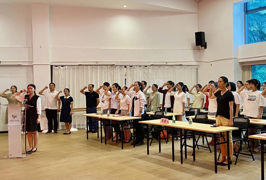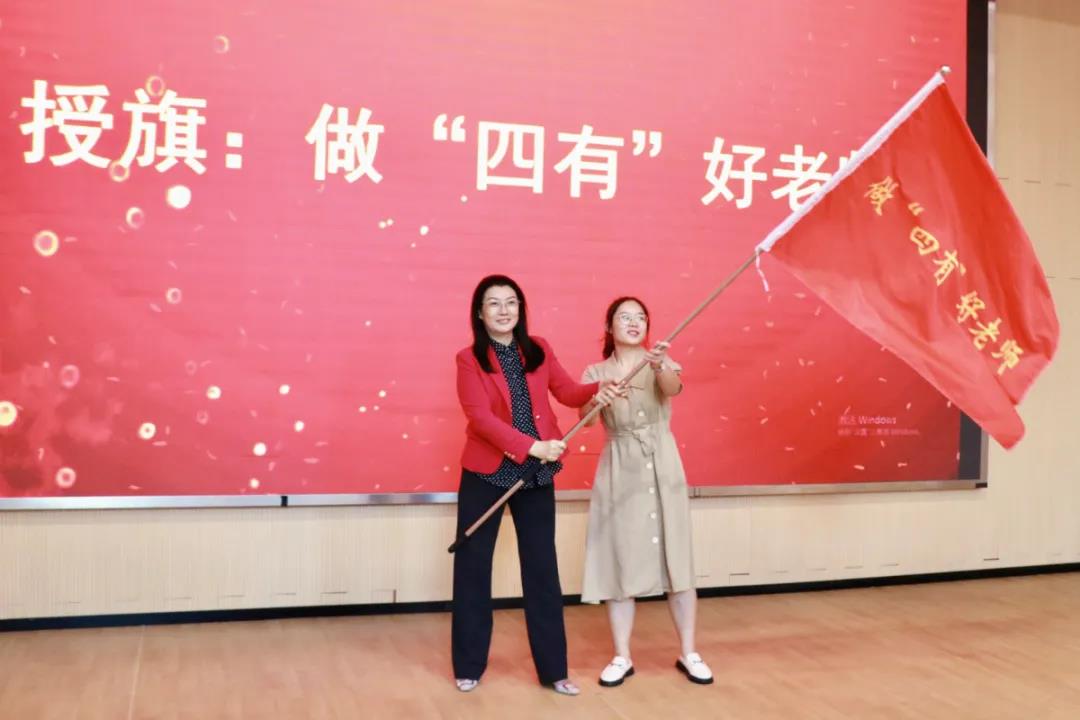 新教师们面对国旗庄严宣誓,用铿锵誓言表达忠于教育事业的信心和决心。