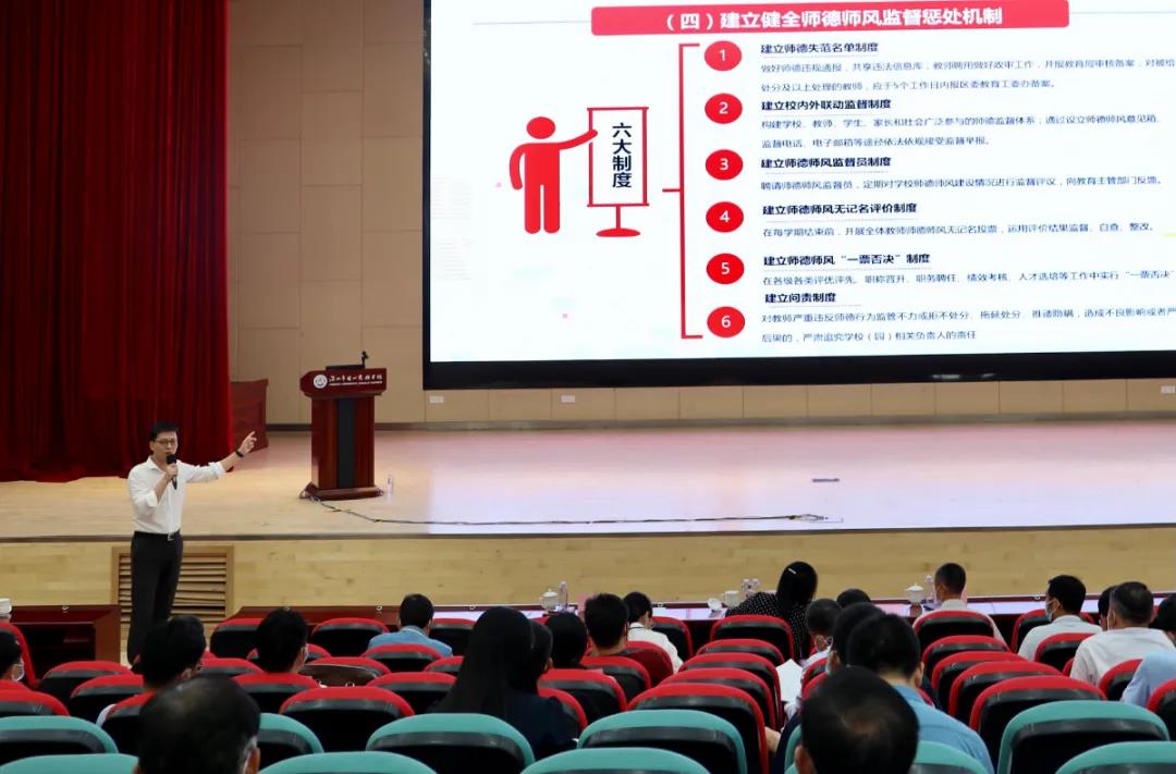 会议强调,教育系统各单位要树立“事前预防”工作理念,建立师德师风建设主体责任制,建立健全师德师风建设长效机制,引导广大教师学习践行新时代师德规范,坚定理想信念、厚植爱国情怀、涵养高尚师德。