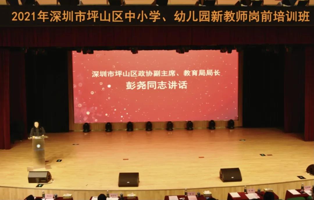 8月25日至26日,坪山区组织中小学、幼儿园新晋入职教师共750多人开展岗前培训。区政协副主席、教育局局长彭尧在开班仪式上寄语新教师:坚守教育初心永葆教育情怀,转换社会角色规划事业发展,加强学习实践提升专业素养,敢于探索创新勇于先行示范。要求全体教师全面贯彻党的教育方针,落实立德树人根本任务,不断努力和进步,专业不断精进,成为塑造品格、品行、品味的“大先生”,成为名副其实的“四有”好老师,成为学生成长的引路人,为党育人、为国育才。