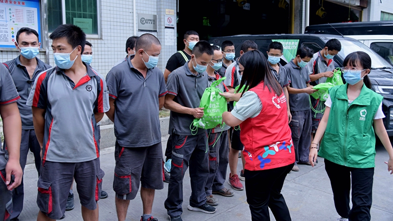 活动当天,工作人员共为烈日下奔赴一线的快递小哥送去防护口罩20000个,洗手消毒液800支,并与他们近距离交流,勉励他们发扬“小蜜蜂”精神,坚定信心,努力工作,用勤劳的双手创造美好的生活。在西部工业区顺丰物流站,企业工会负责人王先生说:“快递小哥每天都奔波在路上,很辛苦,也非常渴望理解与尊重,社区的关爱让我们都感觉暖暖的,让我们感受到被关爱,谢谢你们!”快递小哥李先生在朋友圈晒到:感谢潭头社区美丽的社工小姐姐们的关心,感恩党组织的关爱,给我们好多好多礼物,我们将一直努力加油,共铸幸福生活!