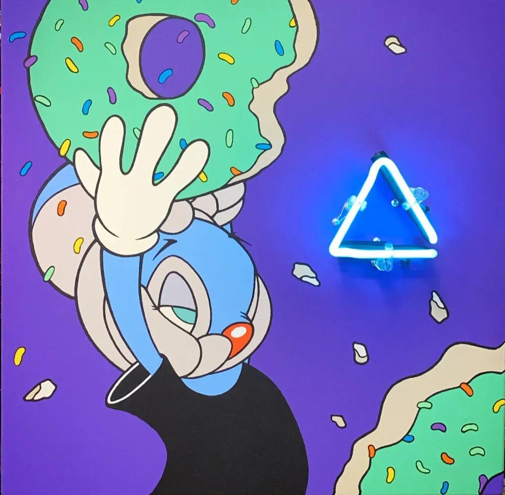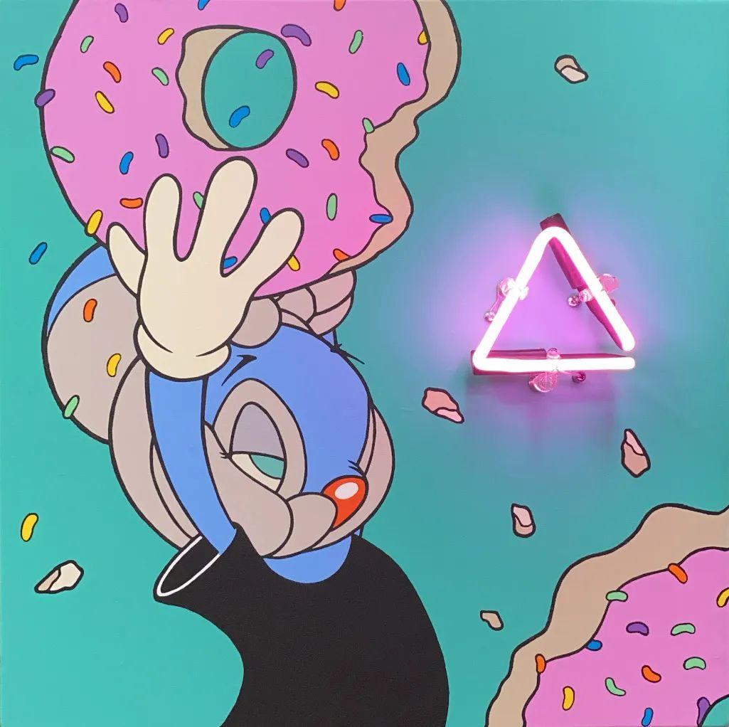 霓虹灯,油画颜料,木制画布