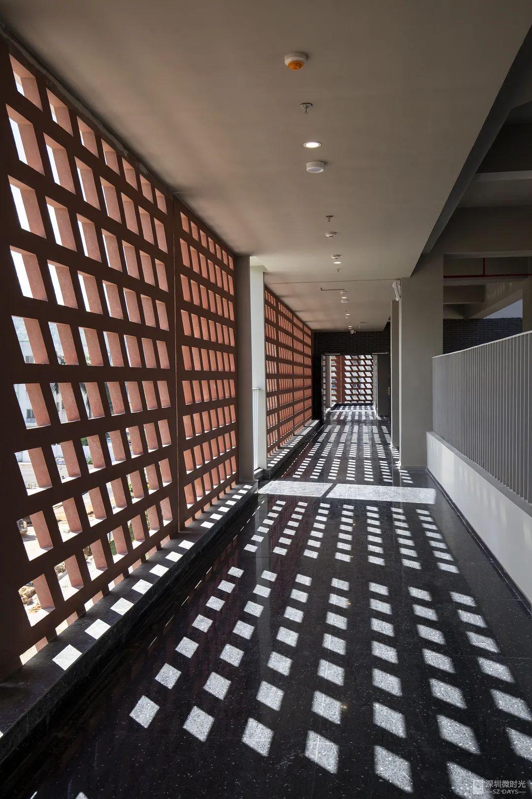 二层连廊将教学楼、体育馆和生活区串联起来,无论是上学来上课,还是放学回宿舍,亦或去打球运动,可说是一路通达,而且完全不用担心日晒雨淋。