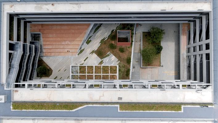底部架空院落、内部庭院、屋顶绿化,高度的变化呈现出了非常丰富的视角效果。