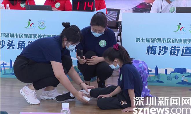 今年大赛采用线上同步直播,活动现场合理控制了参与人数,入场人员须做到全程佩戴口罩,测体温、查行程码、分开入座。比赛过程中,盐田区各支代表队的参赛人员以扎实的理论知识、娴熟的技能操作,向观众充分展现了盐田区居民的健康知识储备与健康技能,获得本次大赛冠军的梅沙街道代表队还将参加全市总决赛。