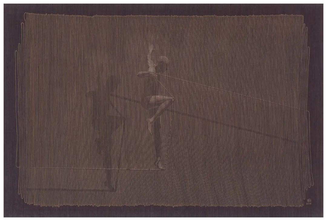 姜吉安,一线之间,绢本绘画,58x90cm,2008