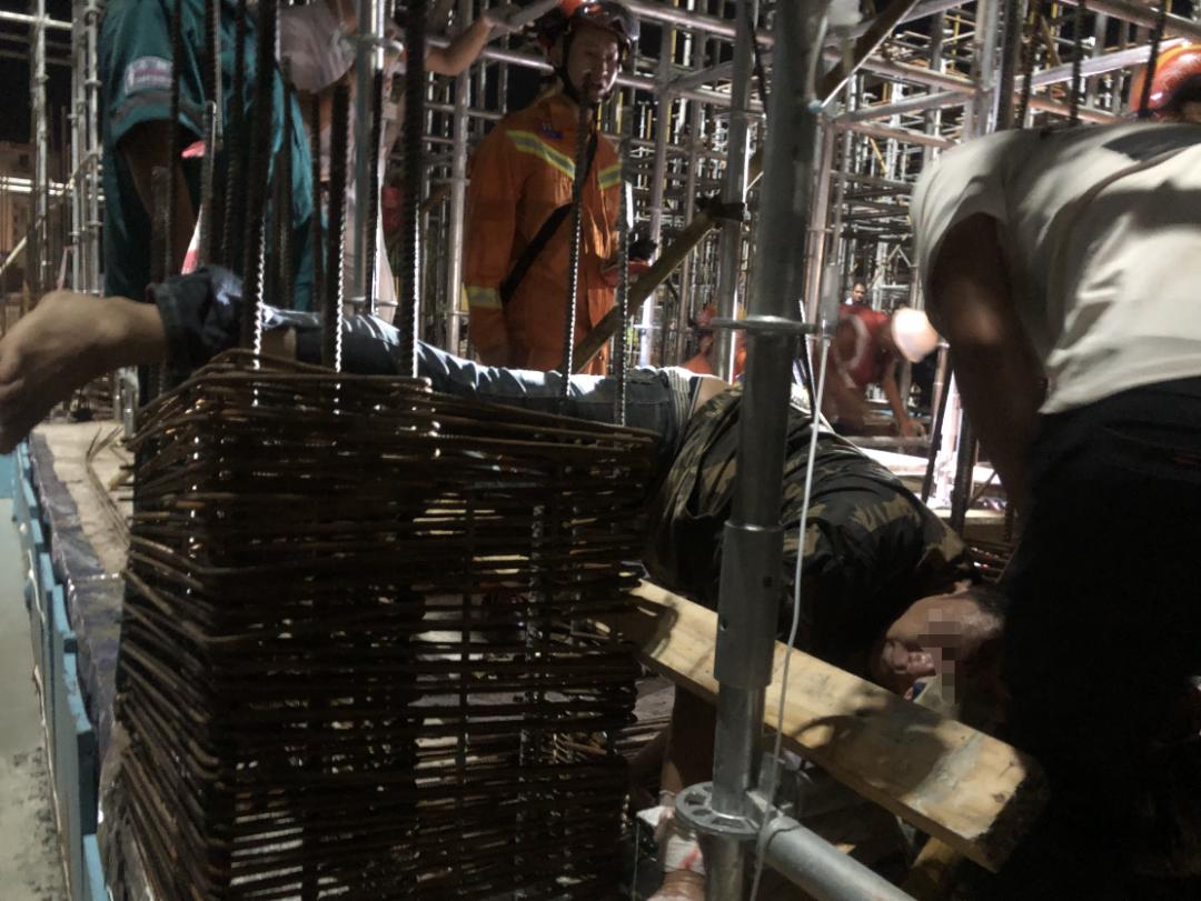 一在建工地有工人腿部被卡住
