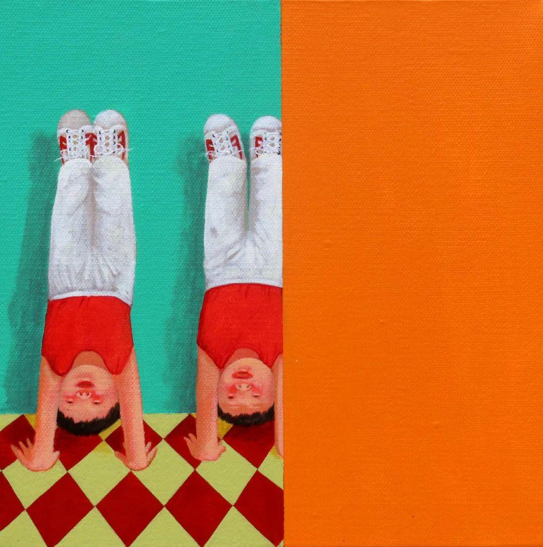 张庆祝,倒立,布面丙烯,30×30cm,2021