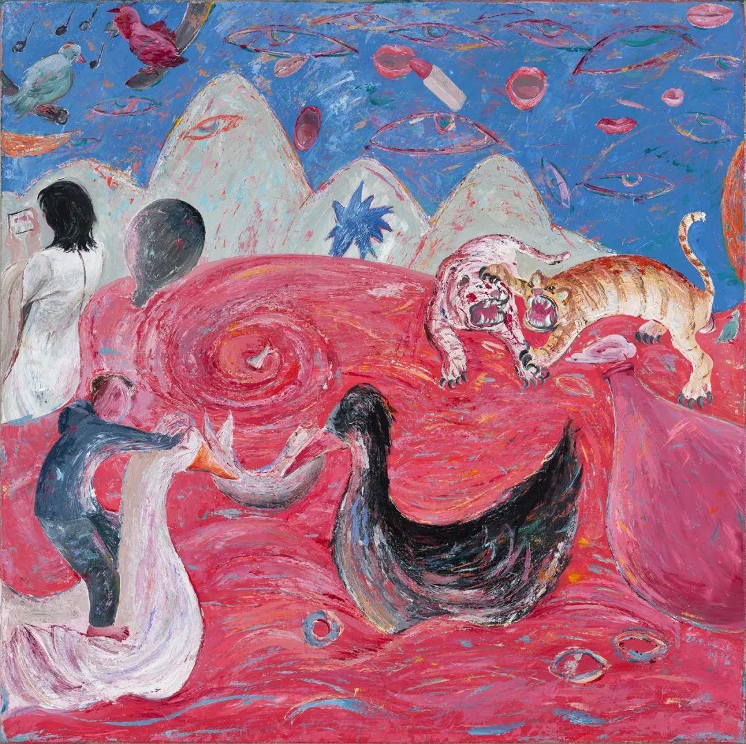 刘鹏,春色满园,布面油画,150×150cm,2021
