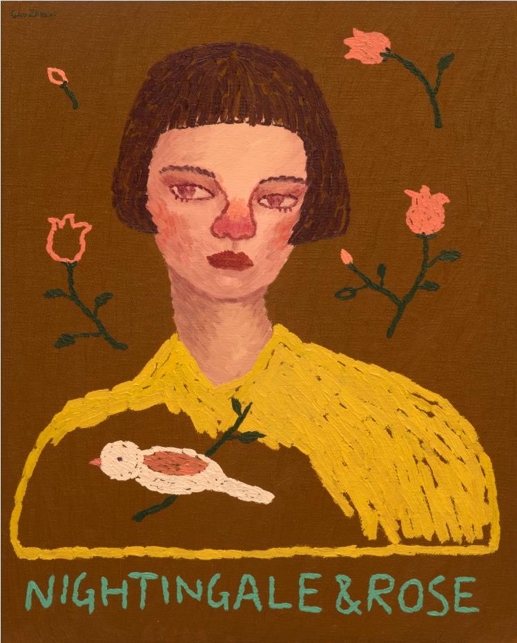 高珍惜,夜莺与玫瑰4,布面油画,50×40cm,2021