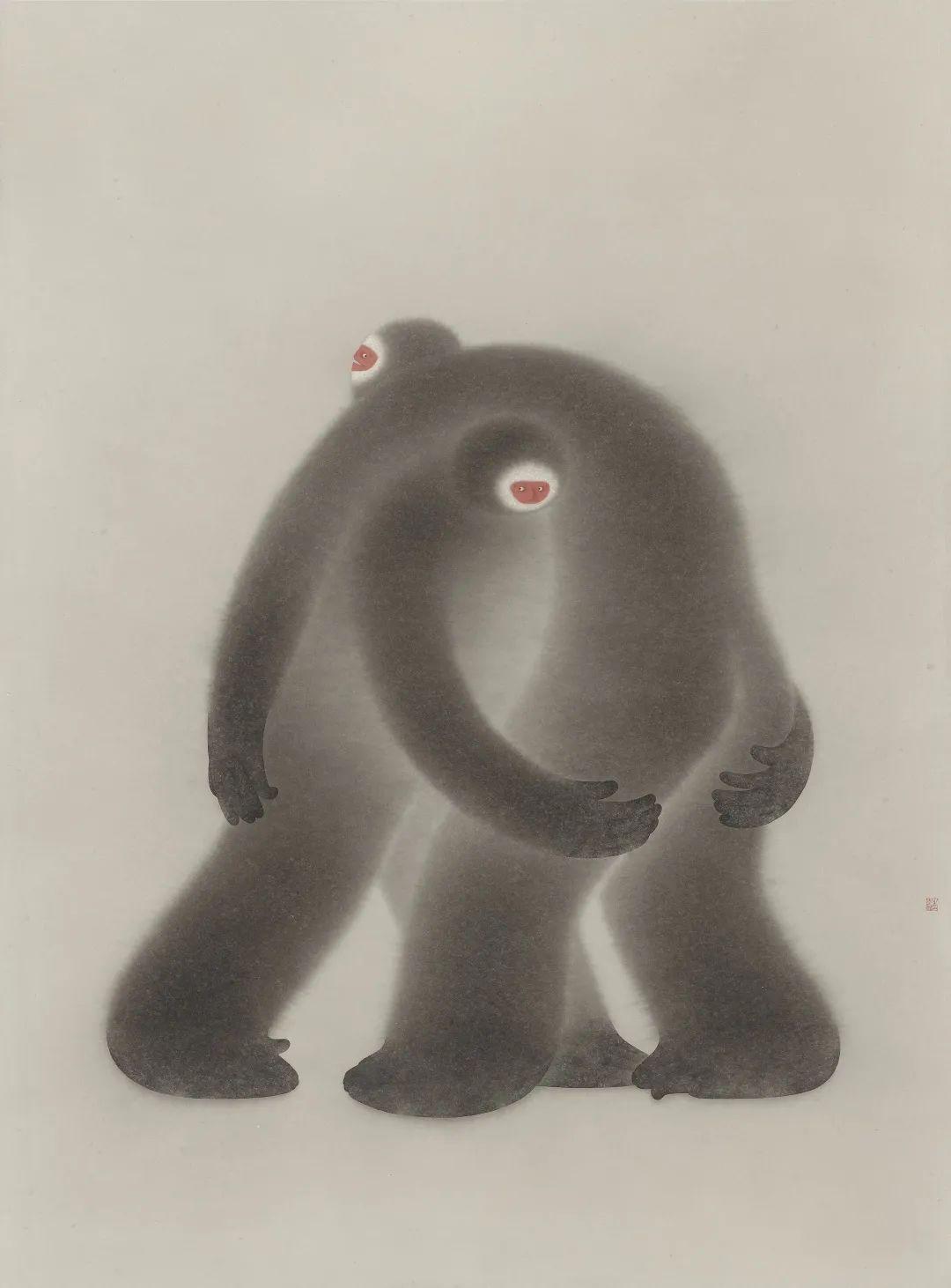 陈艺峰,空恐症三,绢本设色,60×50cm×2,2021