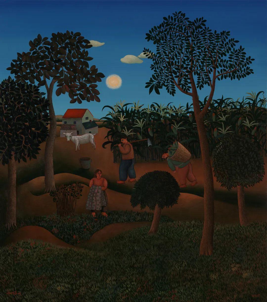 张炯,夏夜的包谷地,布面丙烯,80×60cm,2021