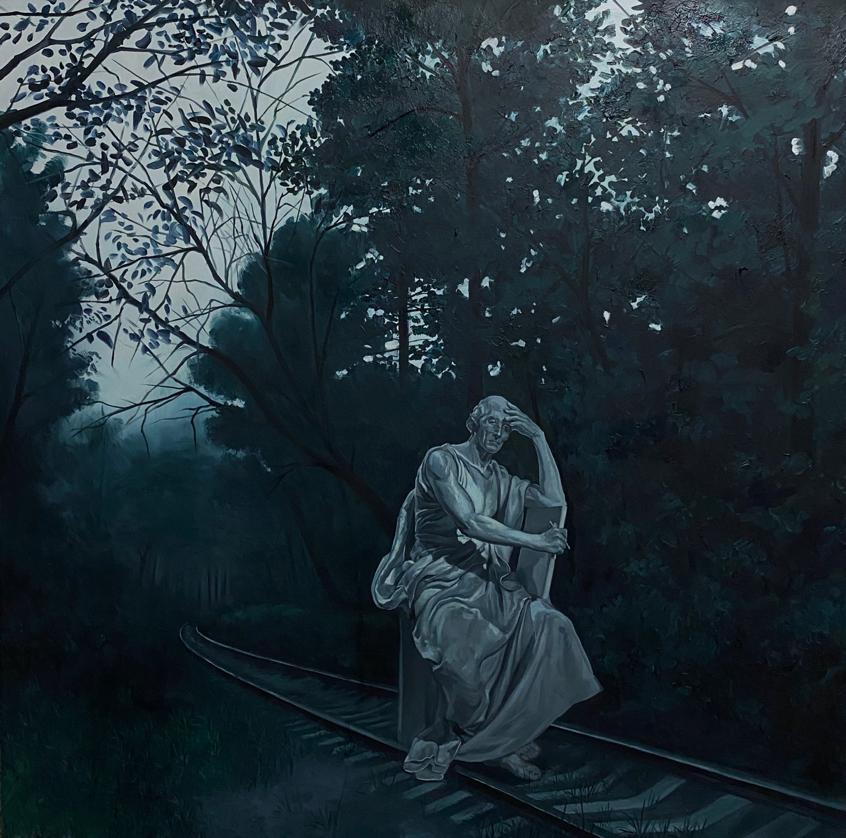 何田,晚期罗斯柴尔德资本主义,布面油彩,100x100x5 cm,2019