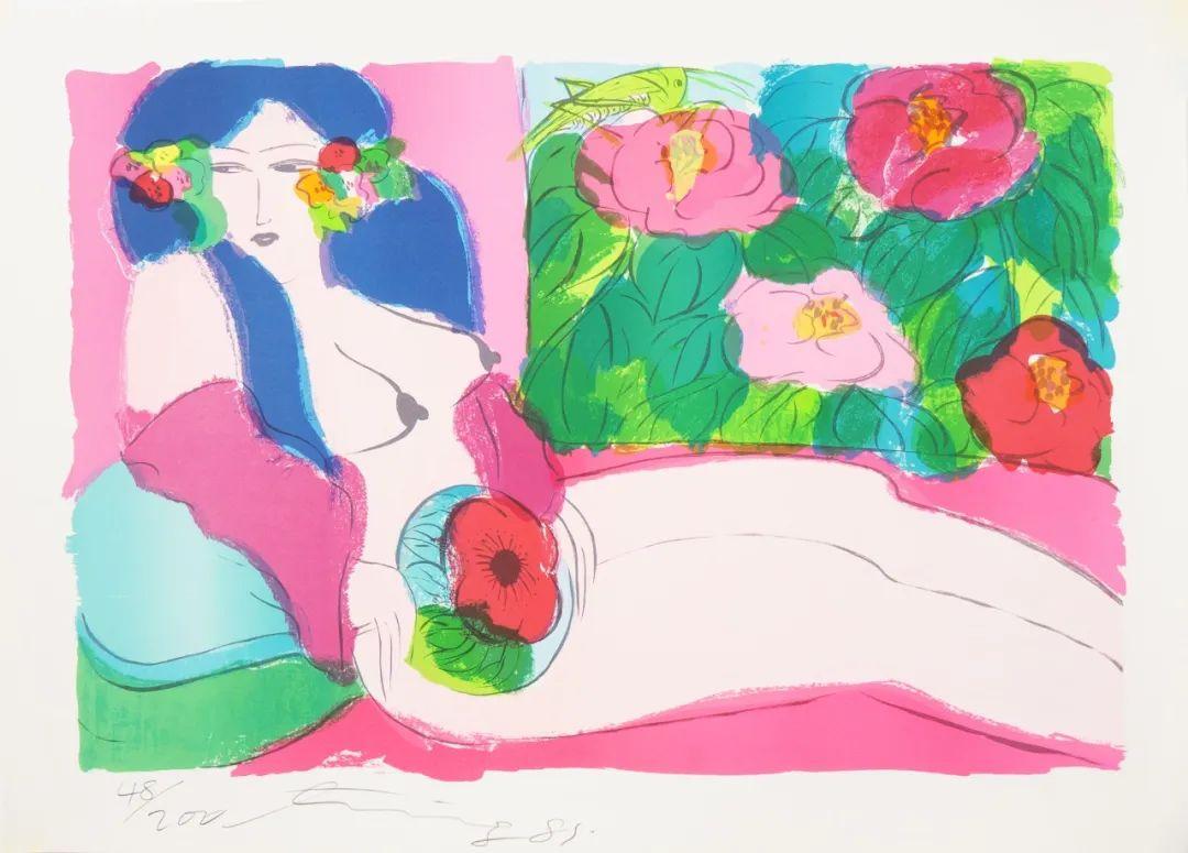 丁雄泉,粉红女郎,纸本石版,纸本石版102#72 cm(彩色画面部分89#60 cm),1987